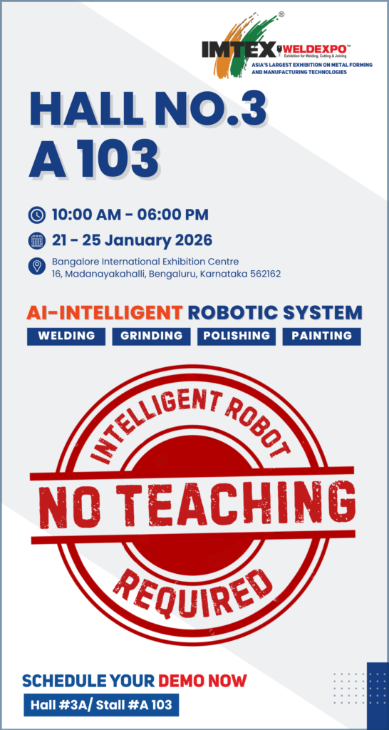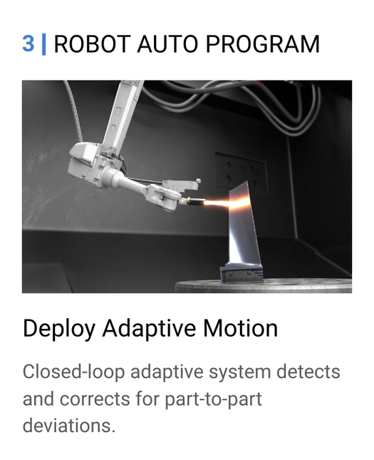 State-of-the-art intelligent welding system delivering precision and efficiency, eliminating manual programming by auto-generating robot programs from 3D models or vision sensors, using a flexible 7-axis arm for welding above 3mm. No Robot Programming Required.