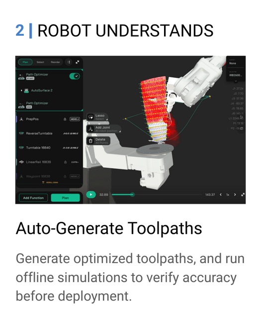 Smart robotic grinding and polishing system provides uniform surface finish, controlled material removal, and improved operator safety. AI-driven intelligence allows fast setup, repeatable quality, and No Robot Programming Required for varied component profiles.