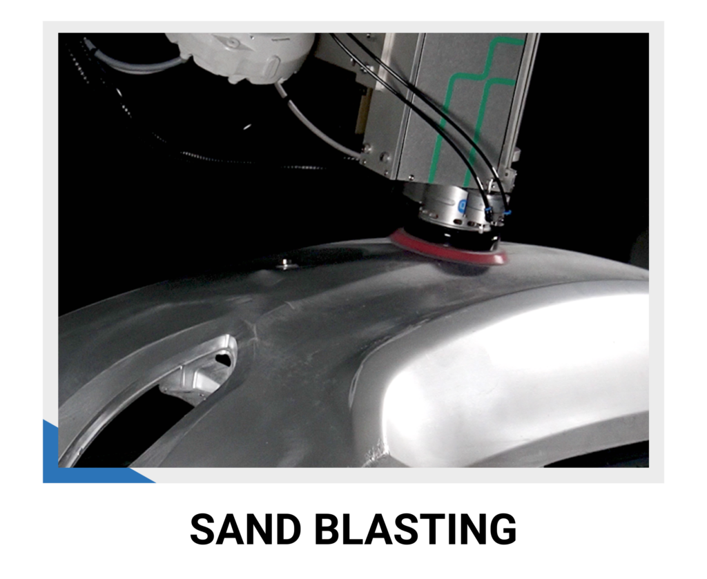 Intelligent robotic sand blasting system ensures uniform surface preparation, controlled blasting pressure, and reduced operator exposure. The AI-enabled solution offers quick changeovers, consistent results, and No Robot Programming Required for efficient operations.